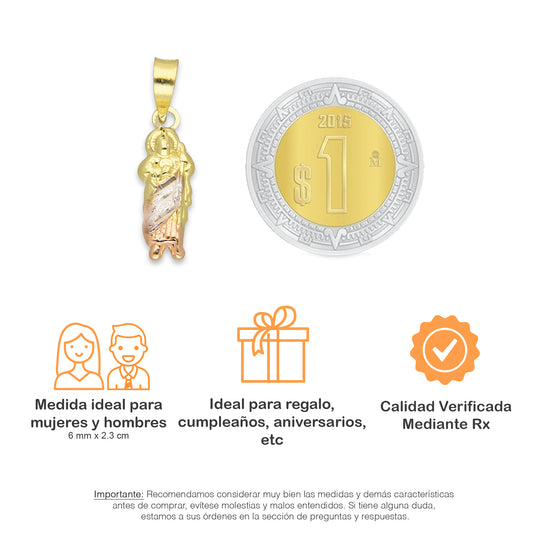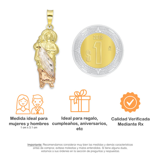 LPEDP016 Cadena Oro Sólido 10K + Dije Troquelado Oro Sólido 14K Florentino San Judas Tadeo 1 cm x 3.1 cm 4293672532