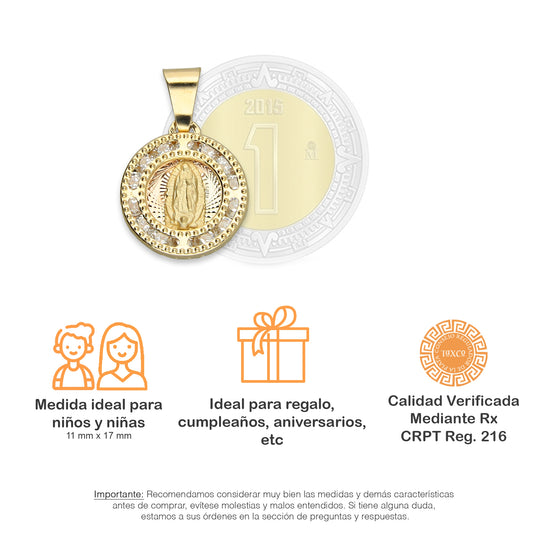 LPEDP001 Cadena Oro Sólido 10K + Dije Medalla Oval Troquelada Oro Sólido 14K Florentino Virgen de Guadalupe 1.5 cm x 2.8 cm 4293620574