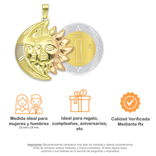 MR14DJ128 Dije Oro Sólido 14K Eclipse Sol y Luna Troquelado Diamantado Florentino 2.3 cm x 2.9 cm