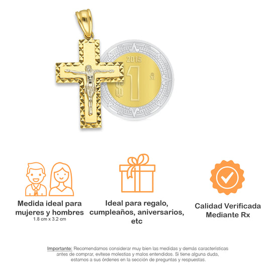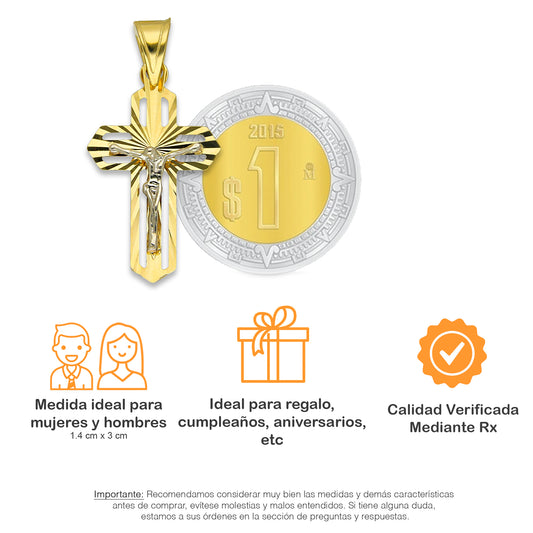 MR14DJ068 Dije Oro Sólido 14K EM14 Crucifijo Cristo Destello 1.4 cm x 3 cm