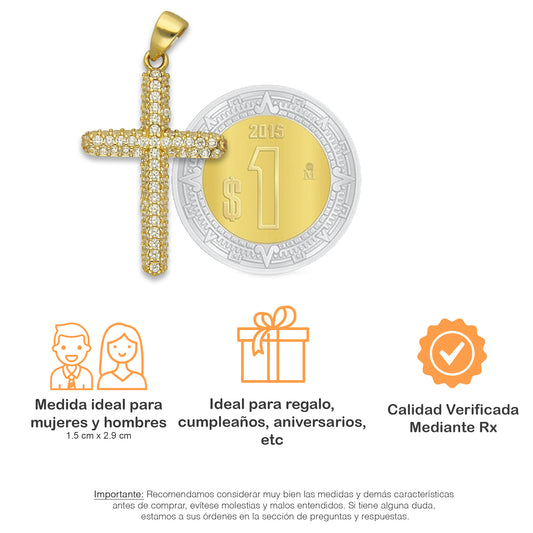 MR14DJ069 Dije Oro Sólido 14K EM14 Crucifijo Tubular Pavé 1.5 cm x 2.9 cm