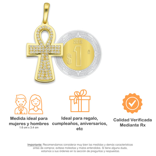 MR14DJ071 Dije Oro Sólido 14K EM14 Cruz Egipcia Pavé 1.6 cm x 3.4 cm