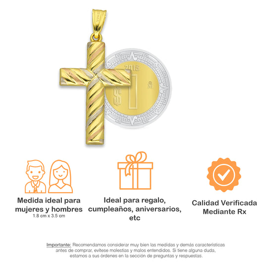 MR14DJ082 Dije Oro Sólido 14K EM14 Cruz Modelo Rlx Movil 2.8 cm x 5.5 cm