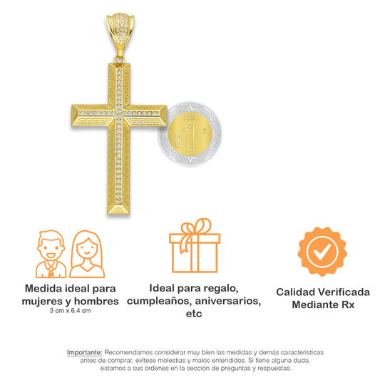 MR14DJ078 Dije Oro Sólido 14K EM14 Cruz Grecas Pavé 3 cm x 6.4 cm