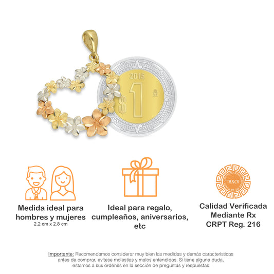 MR14DJ049 Dije Oro Sólido 14K Corazón Con Flores Florentino 2.2 cm x 2.8 cm
