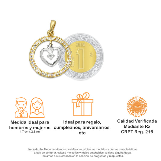 MR14DJ050 Dije Oro Sólido 14K Círculo Corazón con Zirconias 1.7 cm 2.3 cm