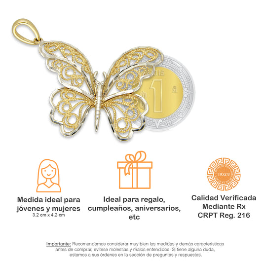 MR14DJ051 Dije Oro Sólido 14K Mariposa Grande 3.2 cm x 4.2 cm