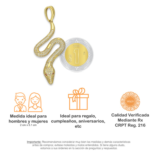 MR14DJ052 Dije Oro Sólido 14K Serpiente con Zirconias 2 cm x 5.1 cm