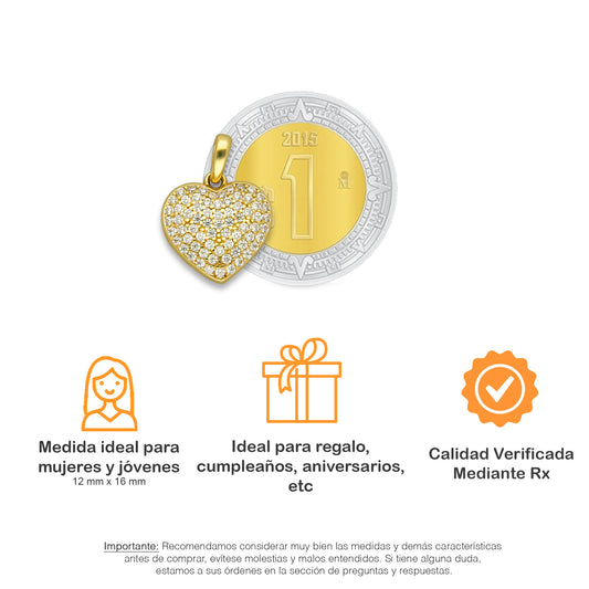 MR14DJ053 Dije Oro Sólido 14K Corazón Mediano Pavé 1.2 cm x 1.6 cm
