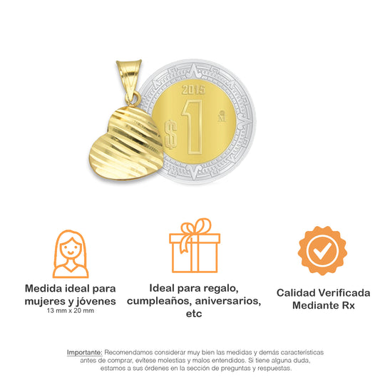 MR14DJ054 Dije Oro Sólido 14K Corazón Bombeado Lineas 1.3 cm x 2 cm