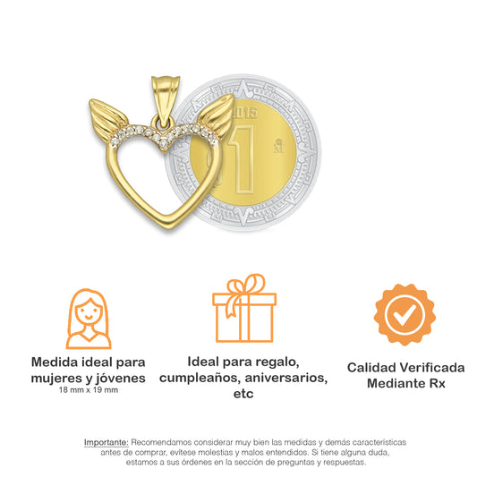 MR14DJ057 Dije Oro Sólido 14K Corazón Silueta Alas 1.8 cm x 1.9 cm