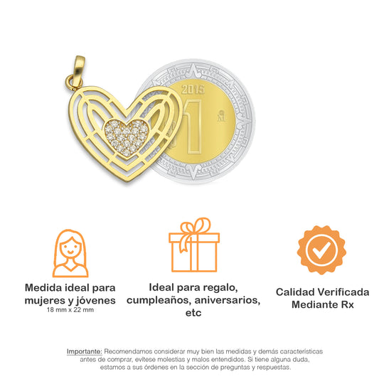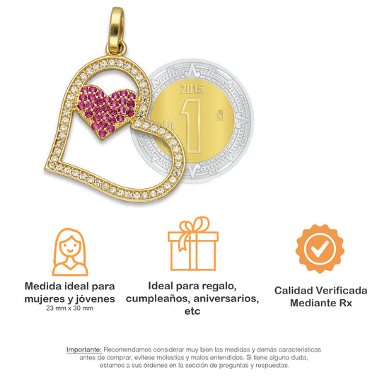 MR14DJ063 Dije Oro Sólido 14K Corazón Silueta con Corazón Pequeño Rosa 2.3 cm x 3 cm