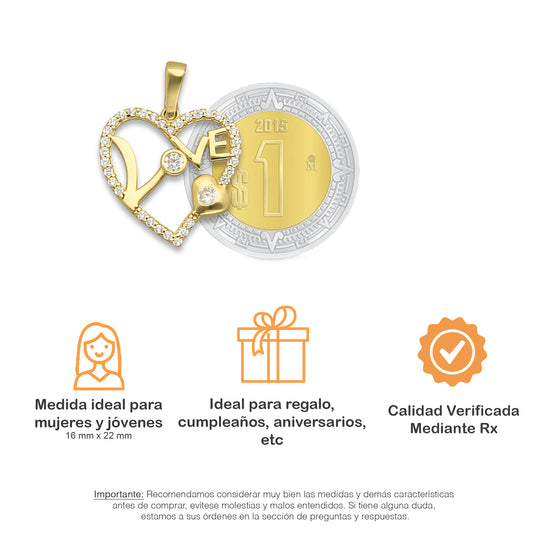 MR14DJ060 Dije Oro Sólido 14K Corazón Silueta Love con Zirconias 1.6 cm x 2.2 cm