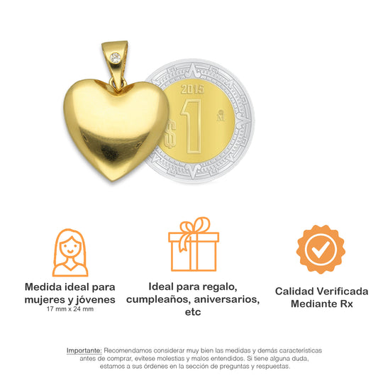 MR14DJ061 Dije Oro Sólido 14K Corazón Bombeado Liso 1.7 cm x 2.4 cm