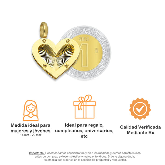MR14DJ062 Dije Oro Sólido 14K Corazón 2 P Radial 1.8 cm x 2.2 cm
