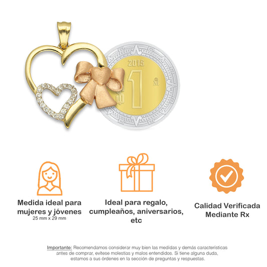MR14DJ065 Dije Oro Sólido 14K Corazón con Moño 2.5 cm x 2.9 cm