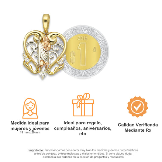 MR14DJ066 Dije Oro Sólido 14K Corazón Florentino San Judas 1.9 cm x 2.9 cm