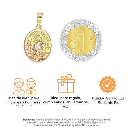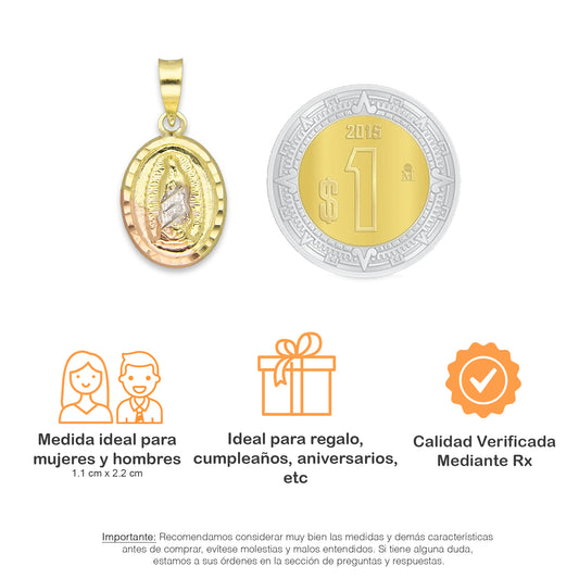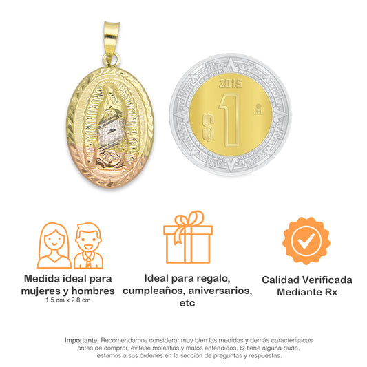 LPEDJ002 Dije Medalla Oval Troquelada Oro Sólido 14K Florentino Virgen de Guadalupe 1.3 cm x 2.4 cm 4287925954
