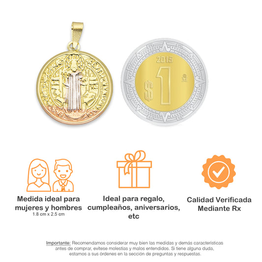 LPEDJ005 Dije Medalla Redonda Troquelada Oro Sólido 14K Florentino San Benito 1.3 cm x 2 cm 4287238066