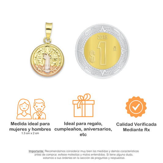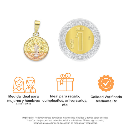 LPEDJ006 Dije Medalla Redonda Troquelada Oro Sólido 14K Florentino San Benito 1.1 cm x 1.9 cm 4287238062