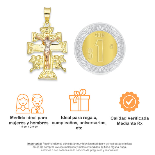 LPEDJ007 Dije Troquelado Oro Sólido 14K Florentino Crucifijo Cruz Caravaca 2.3 cm x 4 cm 4287471628