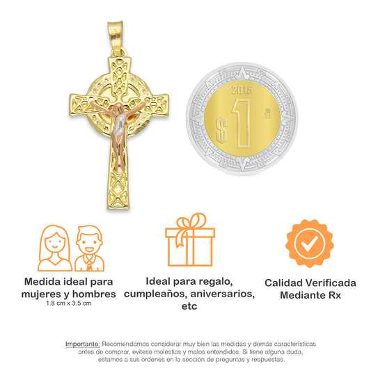 LPEDJ009 Dije Troquelado Oro Sólido 14K Florentino Crucifijo Cruz Celta con Cristo 1.8 cm x 3.5 cm 4287913150