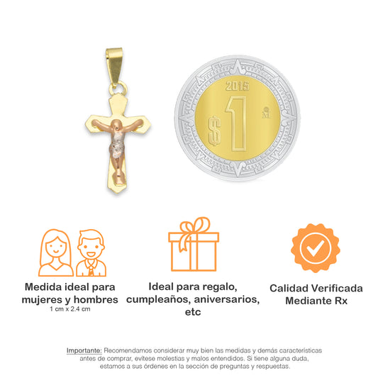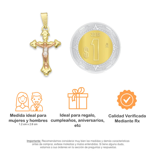 LPEDJ011 Dije Troquelado Oro Sólido 14K Florentino Crucifijo Cruz Media Caña con Cristo 1.2 cm x 2.5 cm 4287484550