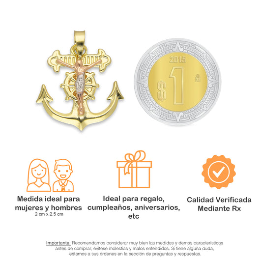 LPEDJ010 Dije Troquelado Oro Sólido 14K Florentino Crucifijo Ancla con Cristo 2 cm x 2.5 cm 4287964550
