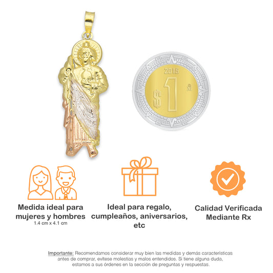 LPEDJ014 Dije Troquelado Oro Sólido 14K Florentino San Judas Tadeo 1.4 cm x 4.1 cm 4287925950