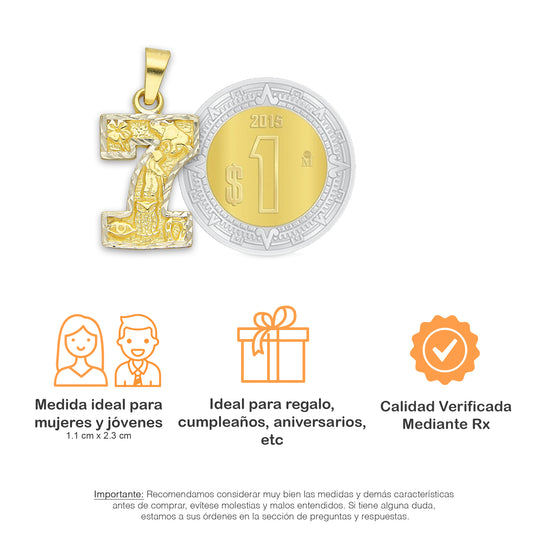 MR14DJ162 Dije Oro Sólido 14K Número 7 de la Suerte 1.1 cm x 2.3 cm