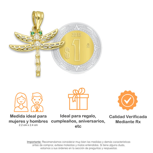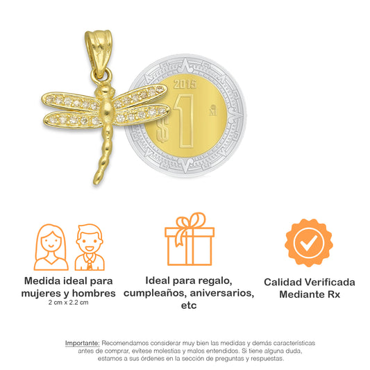 NR14DJ148 Dije Oro Sólido 14K Libélula con Zirconias Mediana 2 cm x 2.2 cm