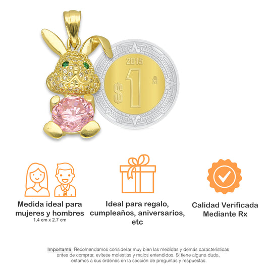 NR14DJ150 Dije Oro Sólido 14K Conejo con Zirconia en la Panza 1.4 cm x 2.7 cm