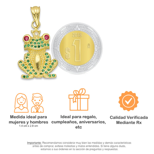NR14DJ151 Dije Oro Sólido 14K Rana Verde con Corona 1.4 cm x 2.8 cm