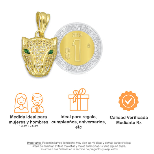 NR14DJ152 Dije Oro Sólido 14K Cara de Pantera Pavé 1.3 cm x 2.5 cm