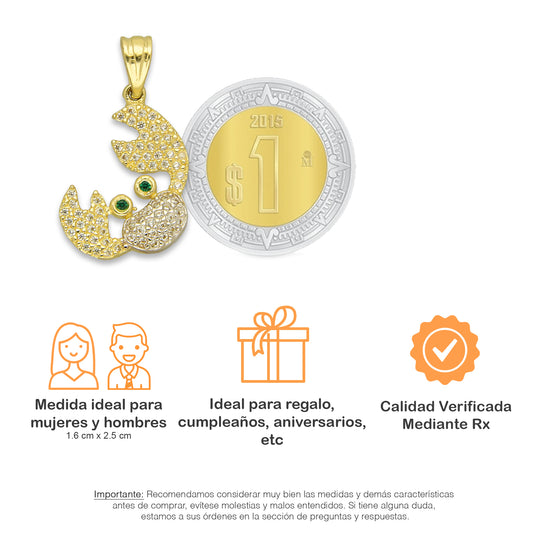 NR14DJ153 Dije Oro Sólido 14K Cangrejito Tenazas Pavé 1.6 cm x 2.5 cm