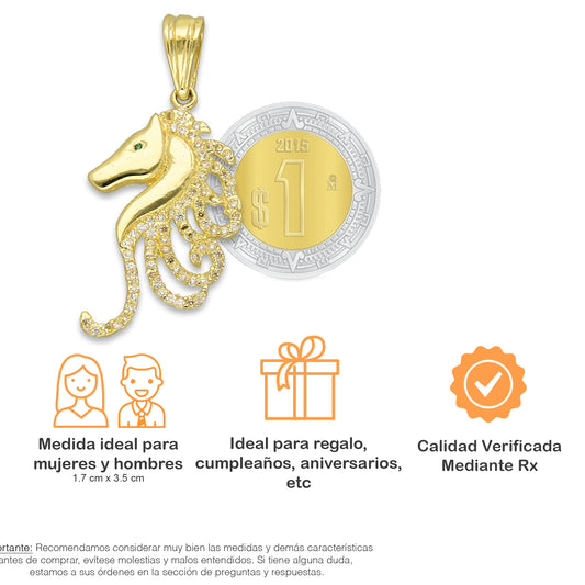 NR14DJ154 Dije Oro Sólido 14K Cabeza Caballo Crin con Zirconias 1.7 cm x 3.5 cm