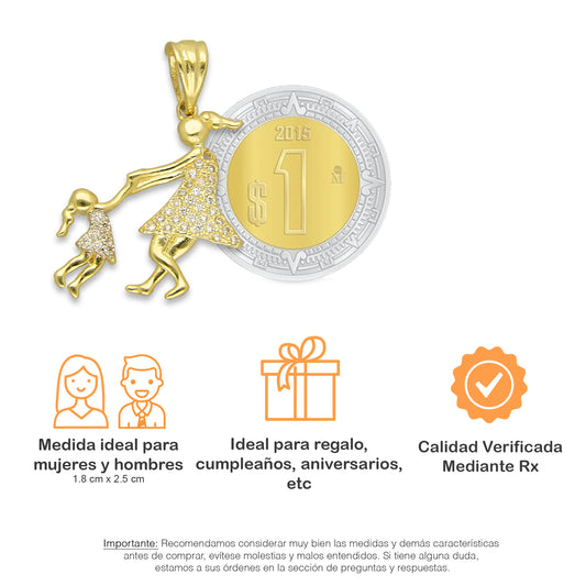 NR14DJ155 Dije Oro Sólido 14K Madre e Hija Jugando 1.8 cm x 2.5 cm