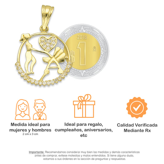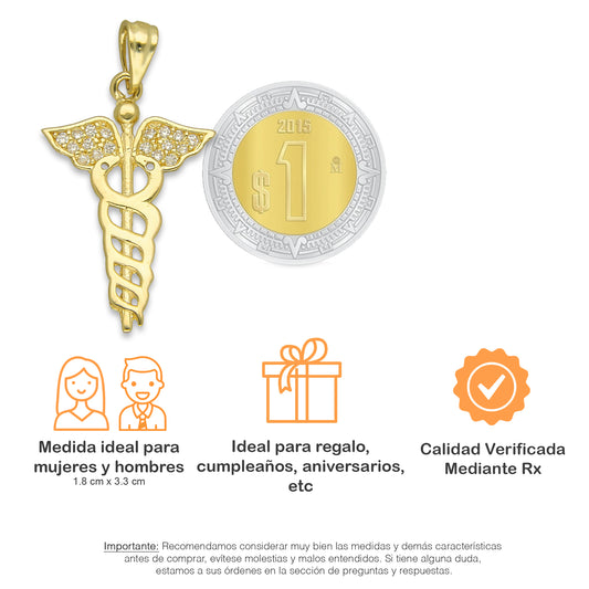 NR14DJ159 Dije Oro Sólido 14K Medicina con Zirconias 1.8 cm x 3.3 cm