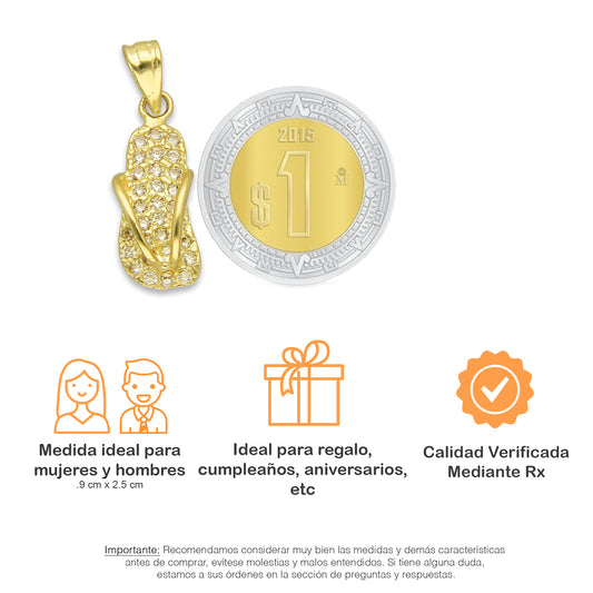 NR14DJ157 Dije Oro Sólido 14K Chanclita con Zirconias Blancas .9 cm x 2.5 cm