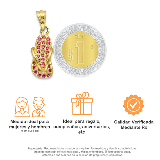 NR14DJ158 Dije Oro Sólido 14K Chanclita con Zirconias Rojas .9 cm x 2.5 cm