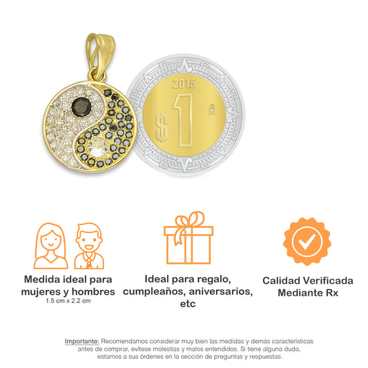 NR14DJ160 Dije Oro Sólido 14K Dije Yin Yang con Zirconias 1.5 cm x 2.2 cm