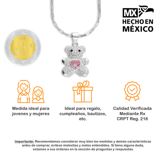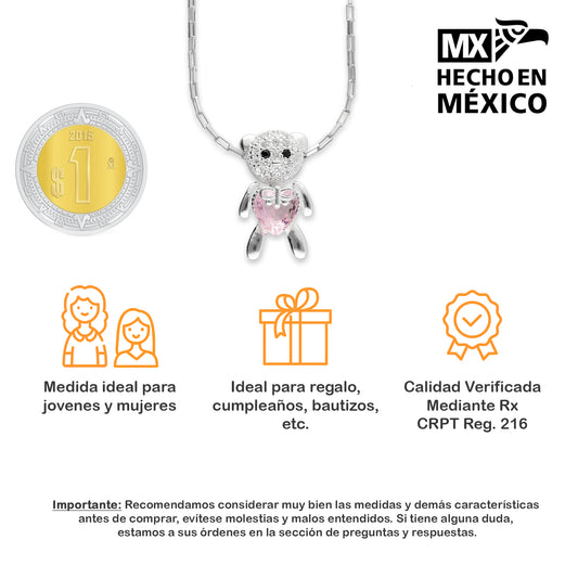 LPDP115 Dije Oso Corazón Rosa con Zirc + Cad 45 cm Plata .925 3533097788