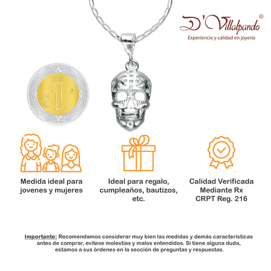 LPDP049 Dije Calavera AB + Cadena 45 cm Plata .925 Taxco Gro 1385789825