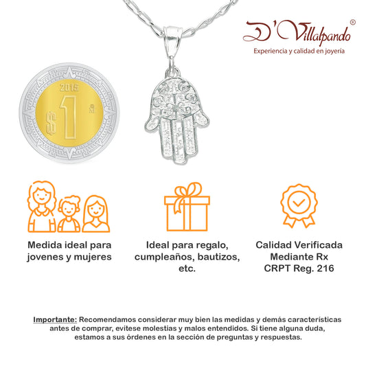 LPDP057 Dije Mano Fátima 6P + Cadena + Regalo Plata .925 Taxco Gro 1388538483