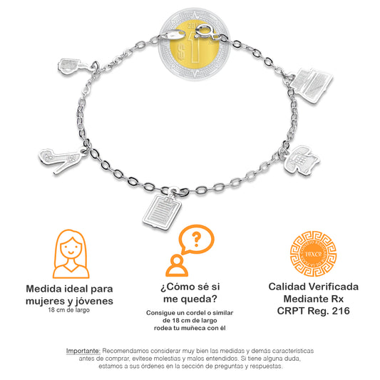LPPD010 PPulsera P/dama Con Dijes De Secretaria En Plata .925 Taxco 835547243