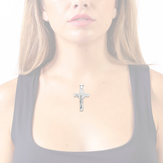 LPDP099 Dije Maxi Crucifijo Sn Benito + Cadena 70 cm en Plata .925 1755842052