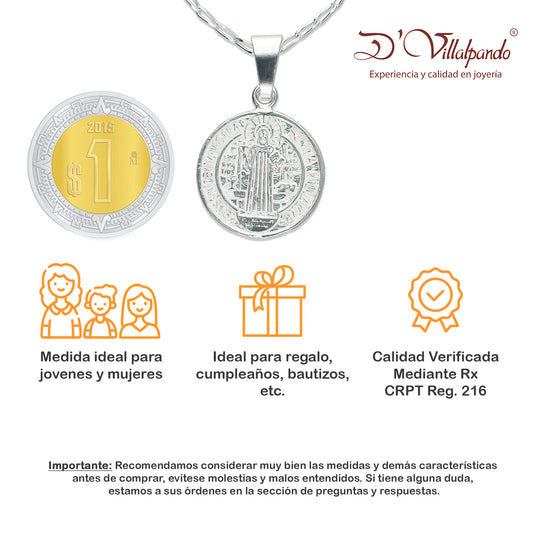 LPDP028 Medalla San Benito 1.7 x 2.4 cm + Cadena + Regalo Plata .925 Taxco Gro 1364963769