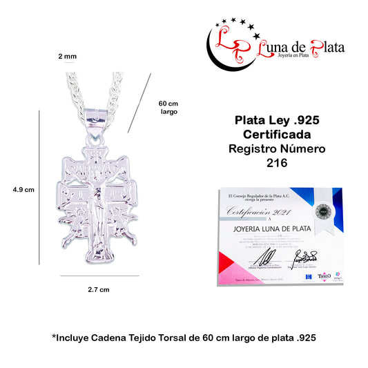 LPDP073 Dije Caravaca Wide + Cadena 60 cm Plata .925 Taxco Gro 1410094158