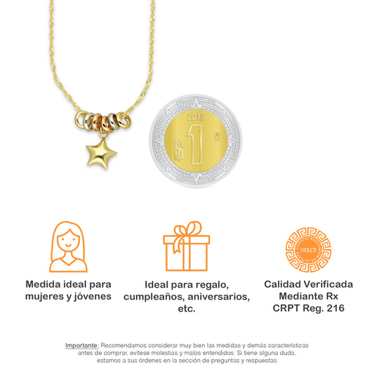 MR14G011 Gargantilla Para Dama Oro Sólido 14K EMF14 Súper Ligera Fantasy Mod Aritos Florentinos Estrella 45 cm