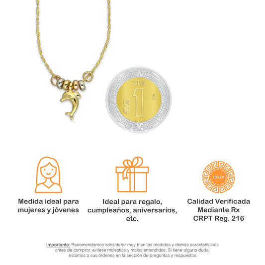 MR10G005 Gargantilla Para Dama Oro Sólido 10K EMF10 Súper Ligera Fantasy Mod Aritos Florentinos Delfin 45 cm